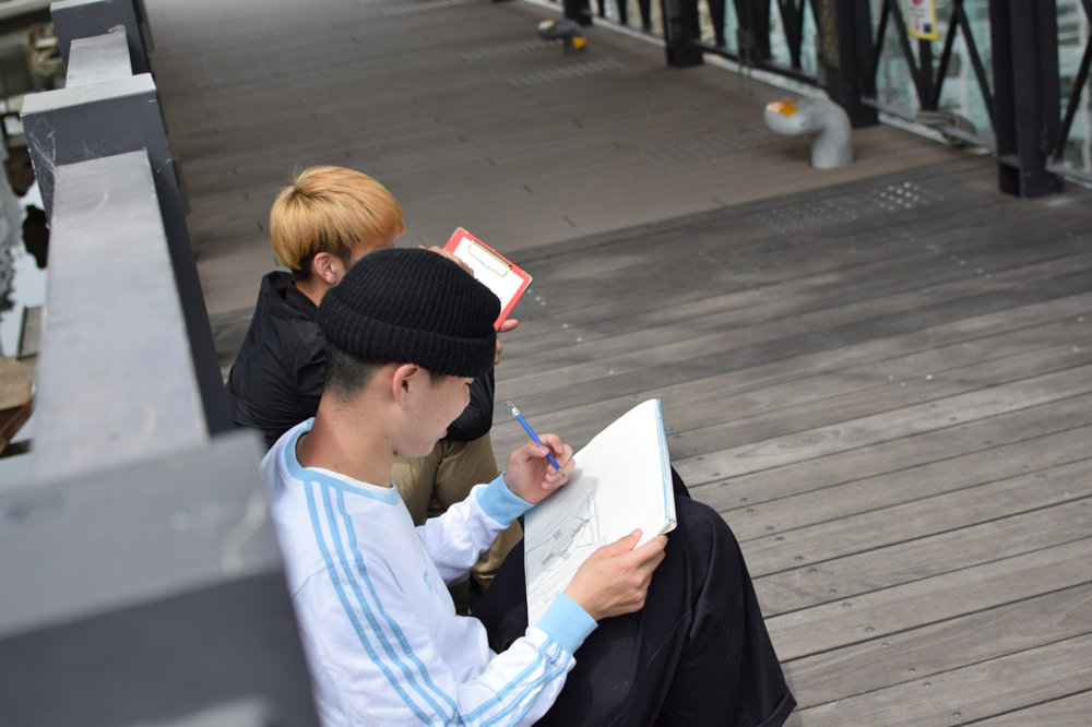 学校近くにデッサンをしにいく午前授業で面白そうでした。個々のスタイルがでる絵の授業は、インスピレーションに溢れています。