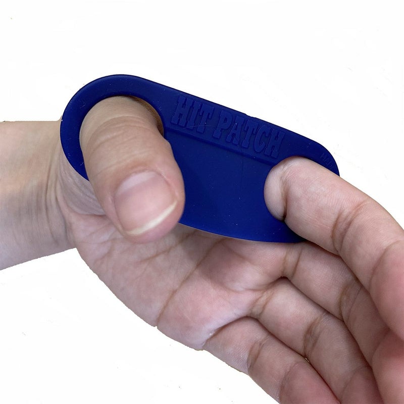 ヒットパッチは親指と人差し指の二本の指に装着するためズレがなく安定する。