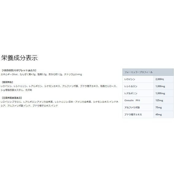 ヒトの筋たんぱく質に占める必須アミノ酸BCAA(分岐鎖アミノ酸)の割合は約35%にもなる。それだけにボディメイクにはBCAAは”絶対に”欠かせない成分。カラダづくりの最中には絶えずチャージしておきたい成分だ。さらに、トレーニング時にも効果的な活力成分アルギニンを配合。その上、アルギニンを強力にサポートするシトルリンも配合することでさらなるエナジーチャージが期待できる。しかし、これらの成分は食事からだけでは満足な量を摂取するのは困難だ。それだけに、本気でカラダづくりを目指しているならば毎日の必須の一品と言える。