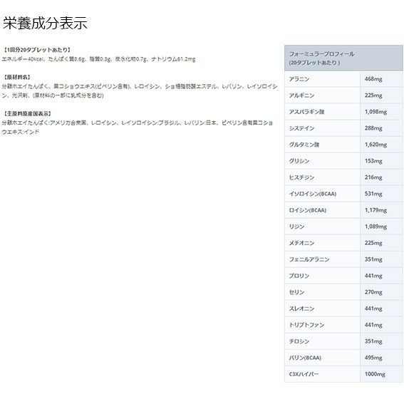 | 1回分の摂取量 | 10~20タブレット |