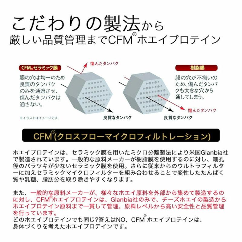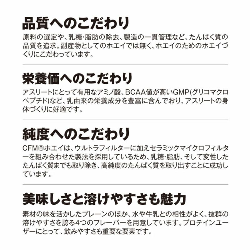 ゴールドジムCFMホエイプロテインは、CFMホエイプロテインにホエイたんぱくを分解した「ホエイペプチド」、さらに「ビタミンB群」を配合。ホエイ成分にこだわった高品質のプロテインパウダーです。