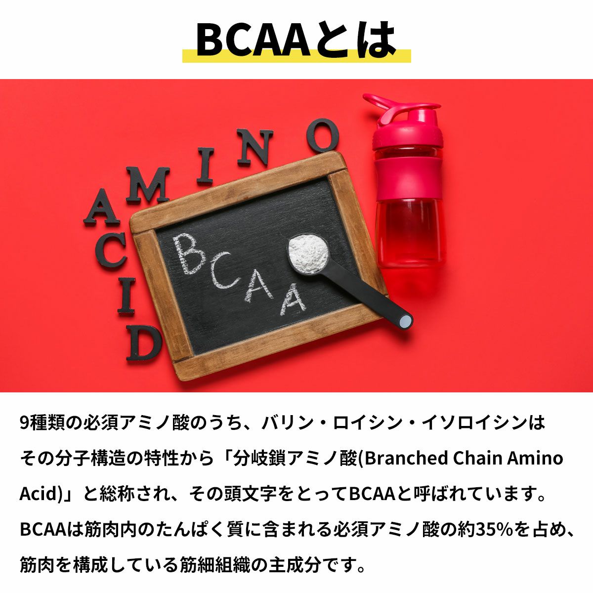 BCAAは分岐鎖アミノ酸の総称で、体内では合成できず外から補う必要があるアミノ酸です。