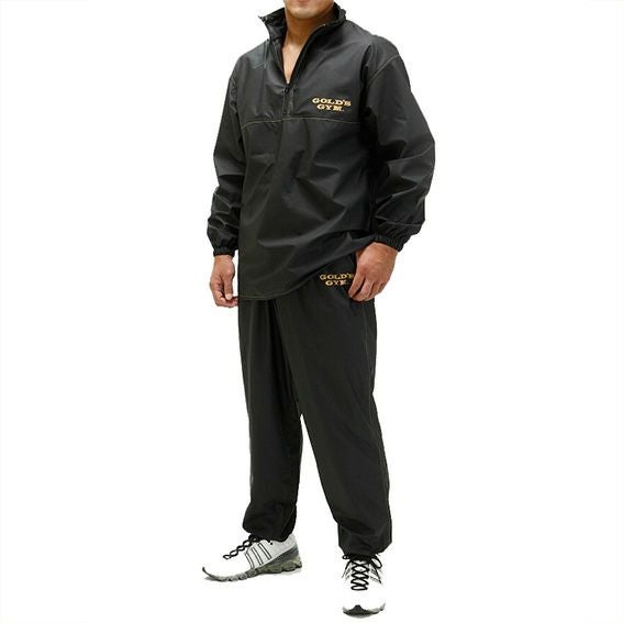裏地に特殊コーティングを施しているため、サウナスーツで最も重要な保温性に優れています。上着は実用性に優れたジッパープルオーバー使用。襟元はスタンドカラー+ストラップ付きで簡単に締め付け具合が調節できます。ゆったりめのパンツ。太ももの幅を従来の商品よりやや太くし動きやすくしました。サイドポケットの内側にもう一つポケットを取り付け、貴重品などを入れることができます。マジックテープ仕様のため、気にせず運動できます。ゴールドジムロゴマークには、反射シートを採用しているため、車のライトなどを反射します。