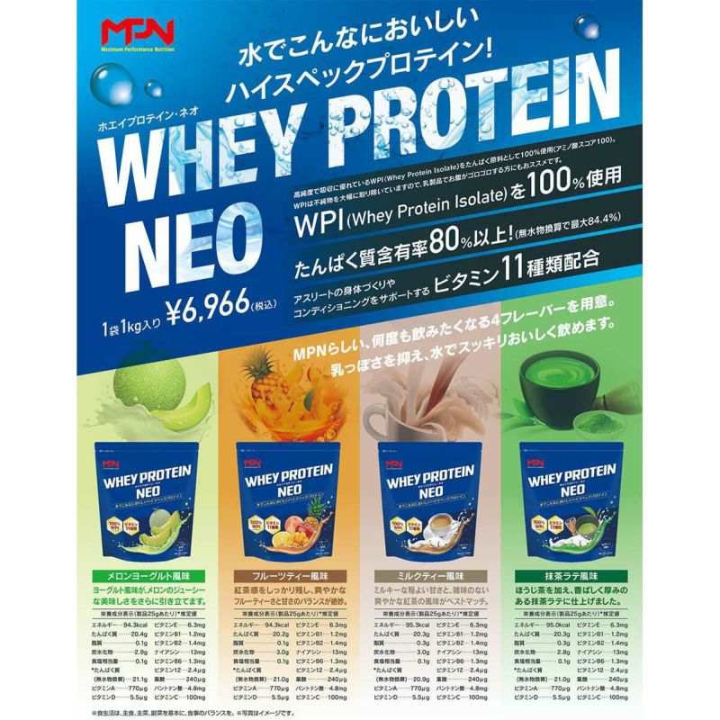 MPN ホエイ プロテイン ネオ WHEY PROTEIN NEO フルーツティー風味 4580416380331 の特長