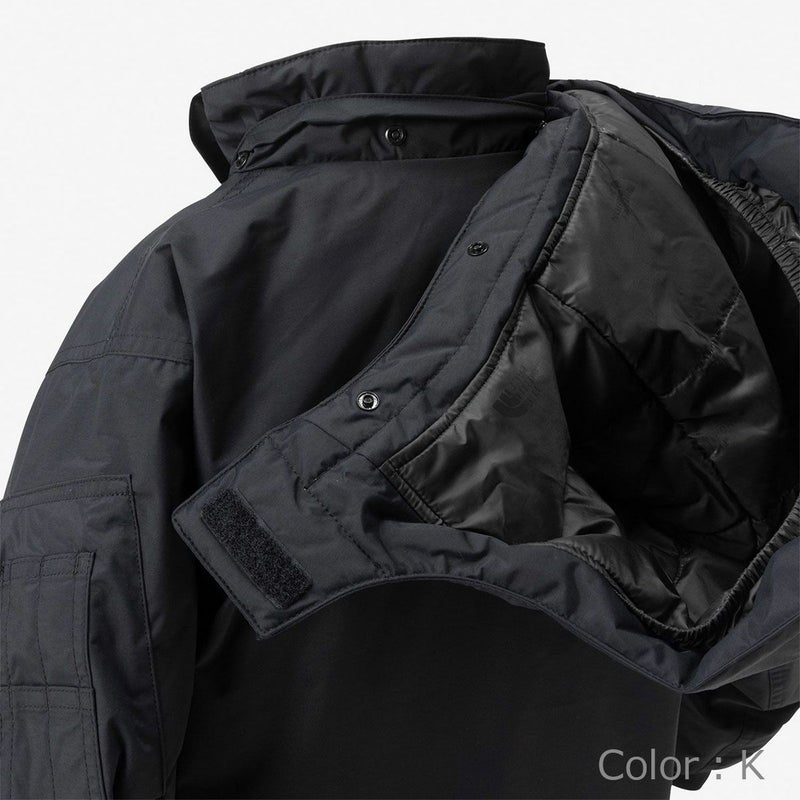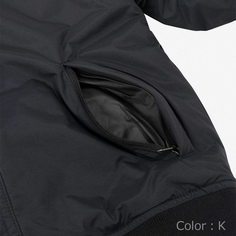 表地には、リサイクル可能なナイロンを使用。中わたには独自開発の保温素材・HEATSEEKERを封入。軽量で密度があるポリエステルの中わたで、あたたかさを高めています。裾や袖口は雪などが入りにくく、濡れにくいはっ水リブ仕様。左上腕にはボンバージャケットの特徴であるファスナーポケットを配置し、ICリフト券や小物を収納するのに便利です。