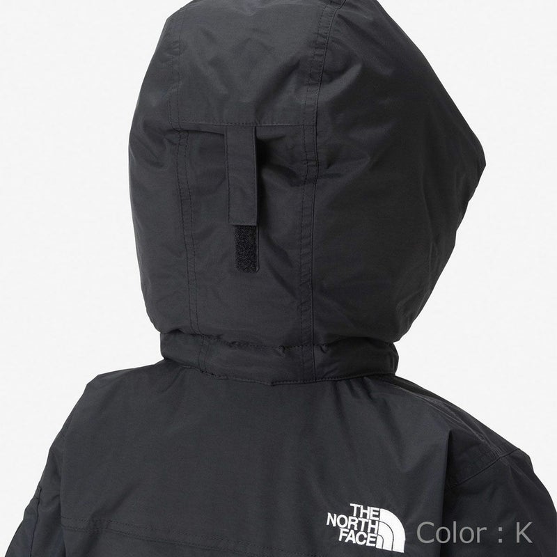 ヘルメット対応のフードは面ファスナーとドットボタンで着脱が可能で、通園などにも使いやすいデザインです。
