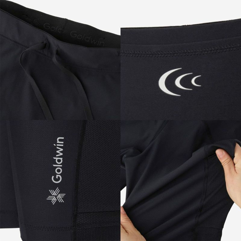 両ももにメッシュのカーゴポケット、背面の腰まわりには3つのポケットがあり、トレイルランニングやロングレースのときに補給食やスマートフォンなどを入れておくのに重宝します。