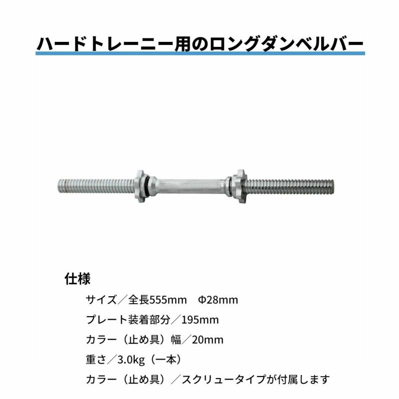 高重量でのトレーニングができる、ロングタイプのダンベルバー。
