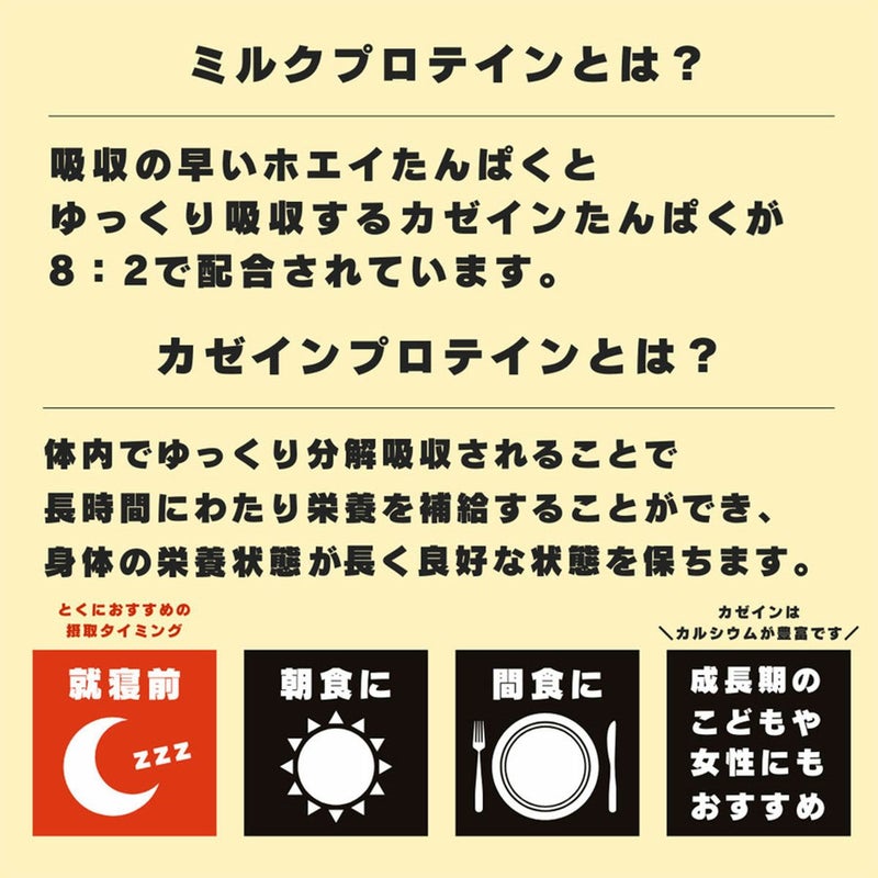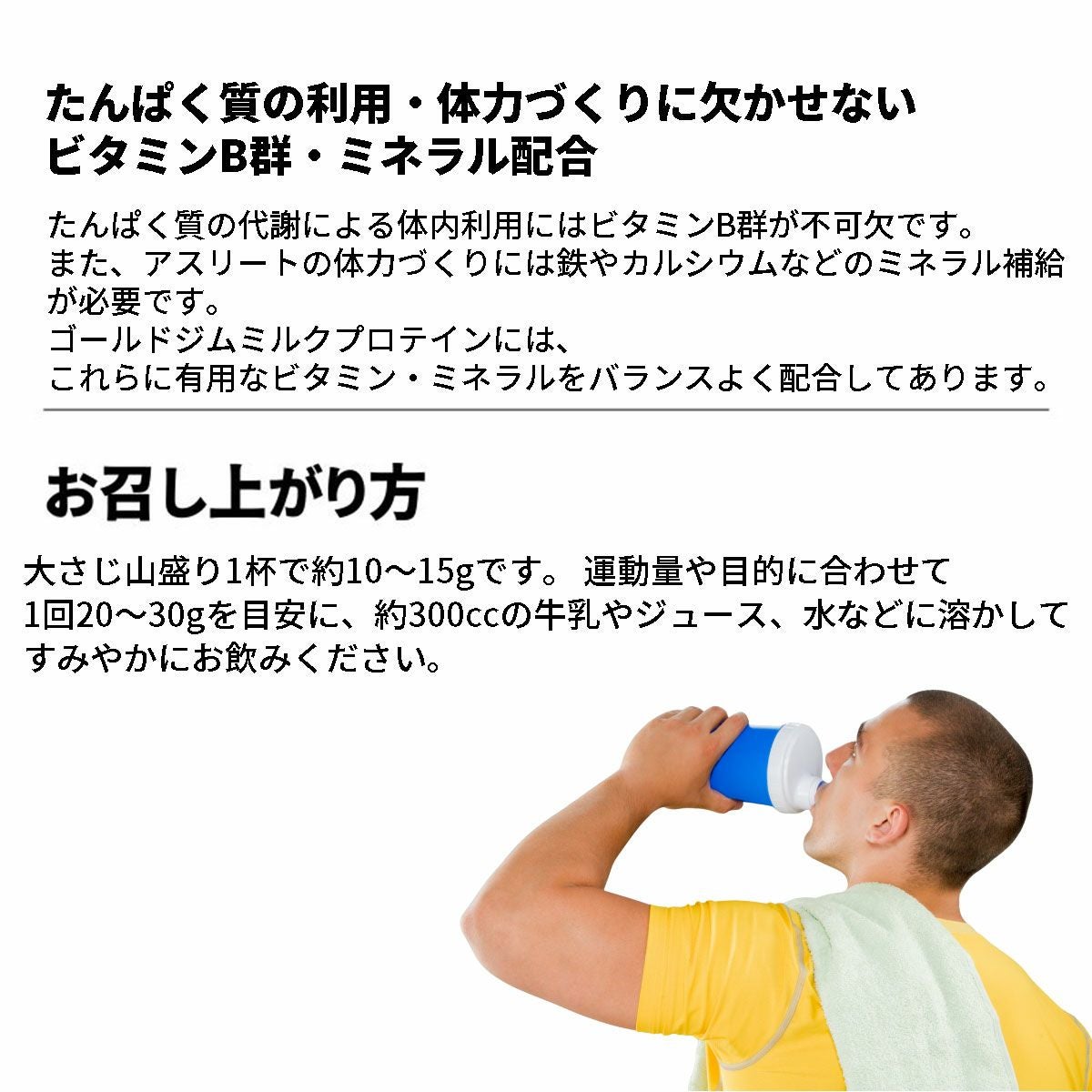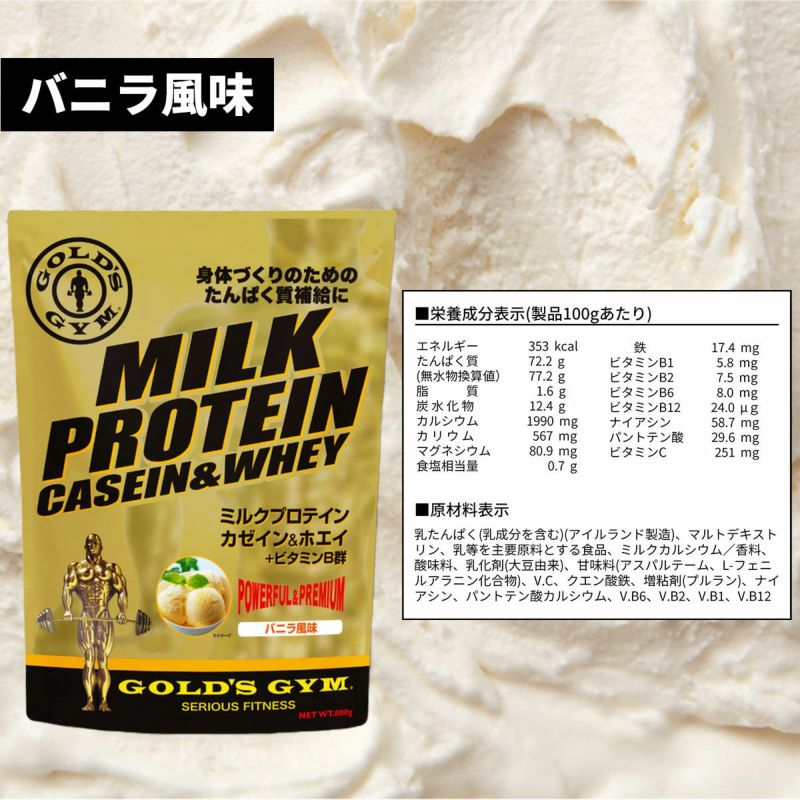 ゴールドジムミルクプロテインは、カゼインたんぱく質とホエイたんぱく質が8対2の割合で含有されるミルクたんぱくを100%使用したプロテインパウダーです。