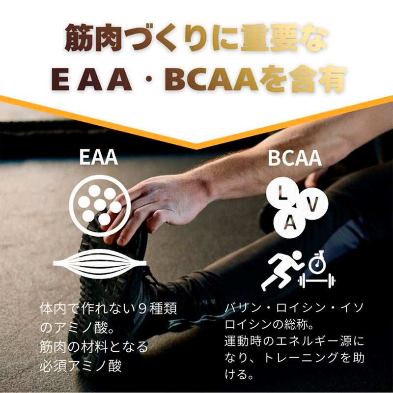 ゴールドジム WPCホエイプロテインは、吸収が良く身体づくりに適したホエイたんぱくを100%使用。動物性たんぱく質で体内で作られないEAA(必須アミノ酸)、特にBCAAを多く含むので、ウエイトトレーニングやスポーツを行う方におすすめです。