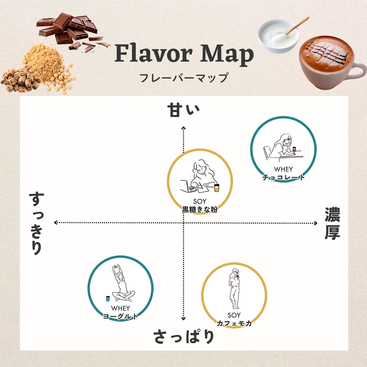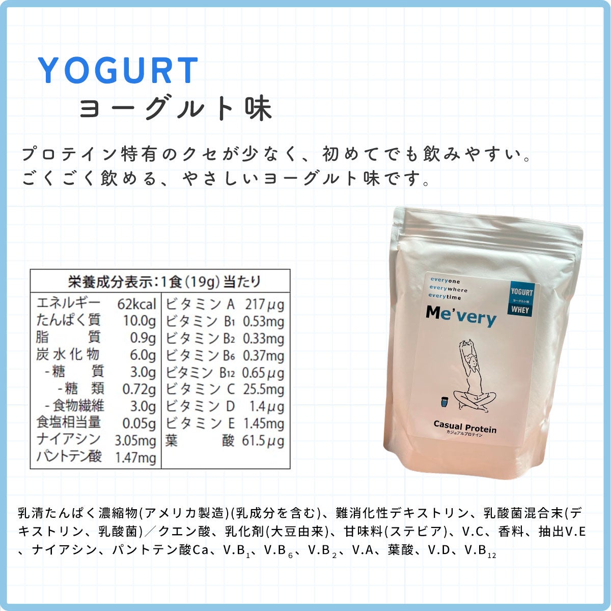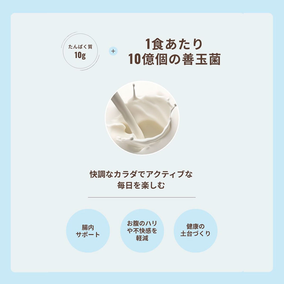 少しストレッチするだけで身体が軽くなったような明るい気持ち。さわやかなヨーグルト風味がそんな気分にさせてくれます。