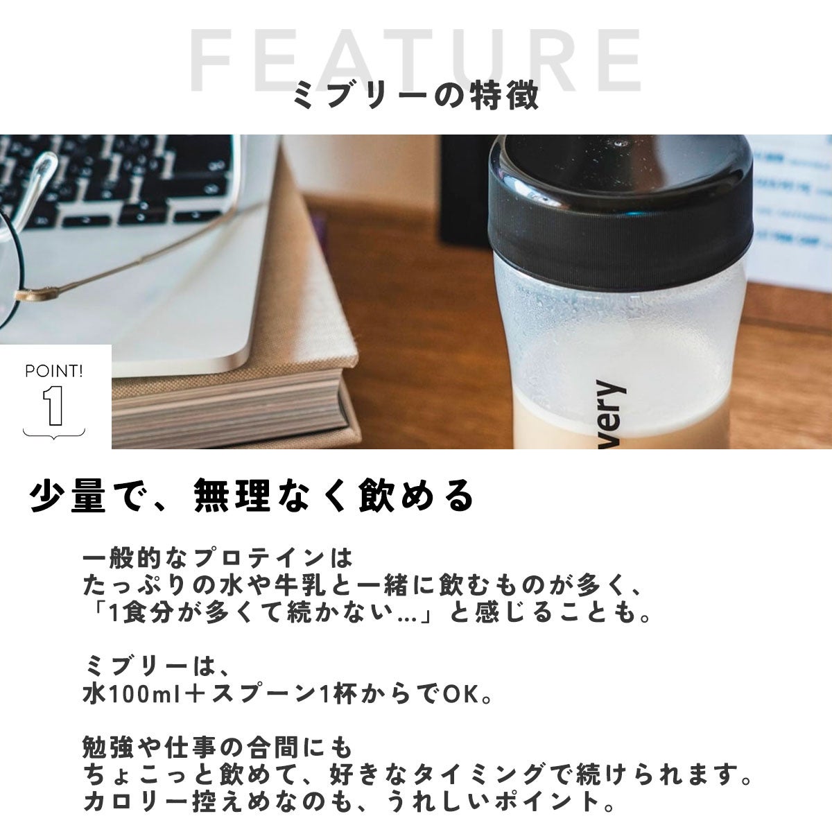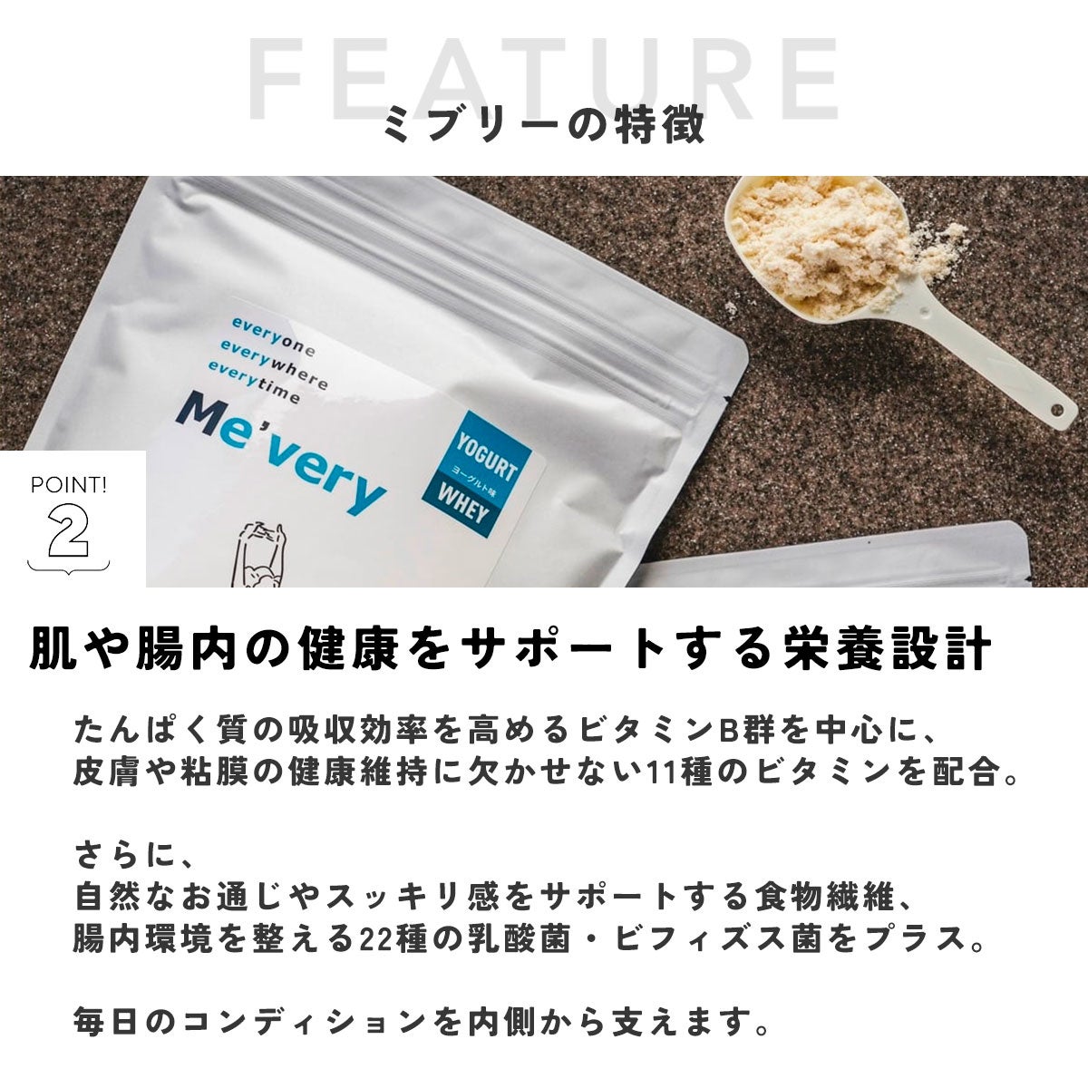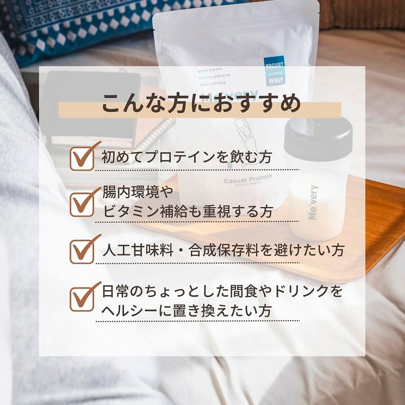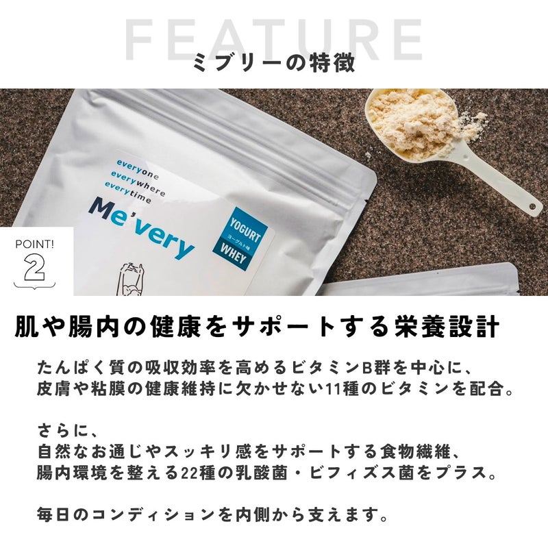 乳由来のホエイプロテインで、たんぱく質を効率よく摂取。消化吸収が早いため、ご飯やおやつににプラスするだけでしっかりサポートしてくれます。