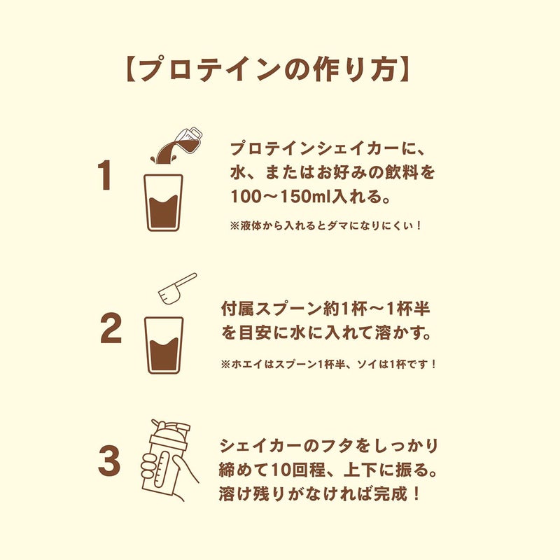 お肌や体にやさしい植物性のたんぱく質がたっぷり。SOYプロテインは消化がゆっくりのため、満腹感が持続しやすいです。