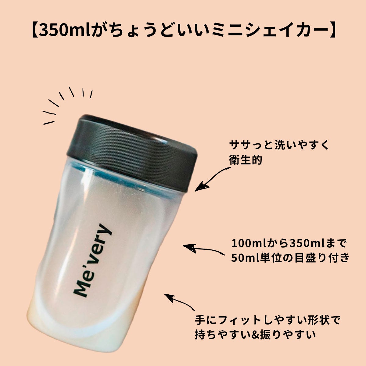 Me'veryのロゴが入った350mlのミニシェイカー