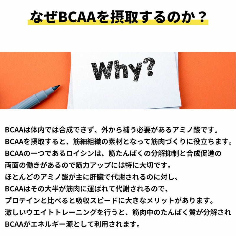 BCAAは分岐鎖アミノ酸の総称で、体内では合成できず外から補う必要があるアミノ酸です。