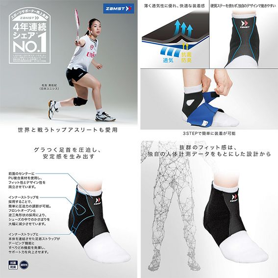 ザムスト 足首用サポーター 右足用 370202 FILMISTA ANKLE ZAMST