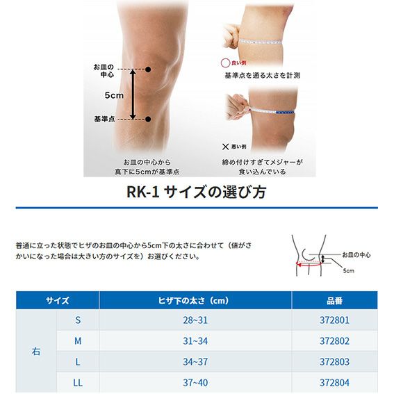 ザムスト ヒザ用サポーター 右足用 RK-1 372802 の商品情報