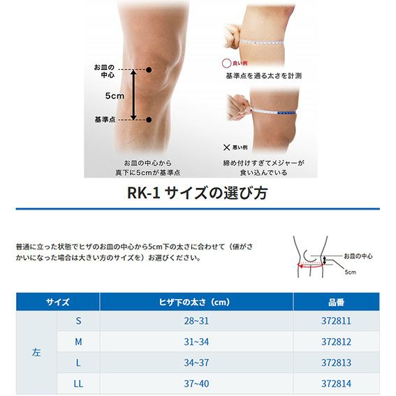 ザムスト ヒザ用サポーター 左足用 RK-1 372814 の商品情報