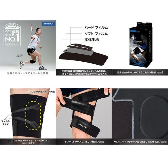 ザムスト 太もも用サポーター 左右兼用 FILMISTA THIGH 377802 の特長