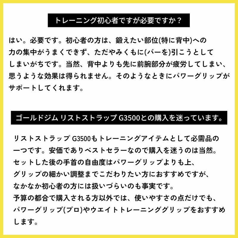 ・特長1:プル系(引く)トレーニングでは鍛えたい身体の部位に力を集中でき、プレス系(押す)トレーニングではグリップの本体部分が滑り止めの役割を果たします。