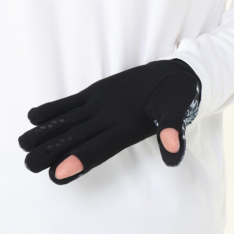 ・滑りやすい生地の中指・薬指には滑り止めプリントを施し、グリップ力を確保