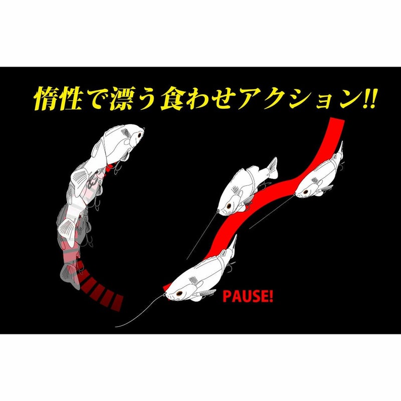 ストレートリトリーブでは、体高のあるボディから生まれる凄まじいまでの水押しでアピール。ストップ & ゴーやジャーキング後のラインスラッグを取ったポーズでは、まるで自ら意志で動いているかのように惰性で漂う独特の食わせアクションが、異常なほどにビッグバスを惹きつけるメソッドとなっています。