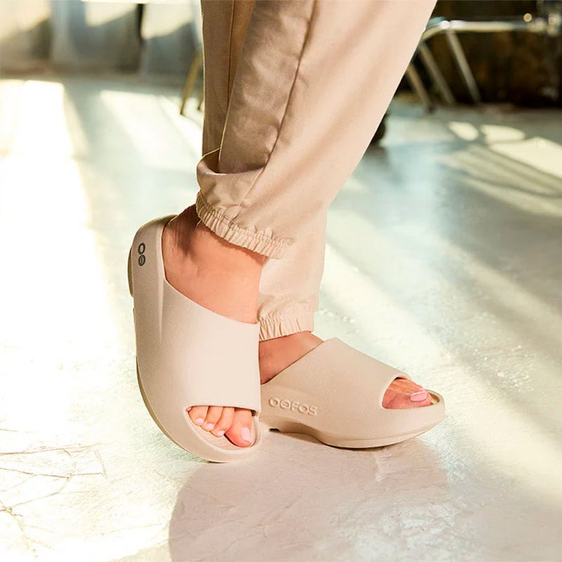 ベストセラーのスライドサンダルをベースに、ふんわり感を最大限に高め、柔らかさと安定性を両立させた一足です。OOfoamが足を包み込むように設計され、幅広で流線型のストラップが足をしっかりと固定。立体的に成形されたフットベッドが足の裏にフィットし、まるで雲の上を歩いているような感覚をもたらします。