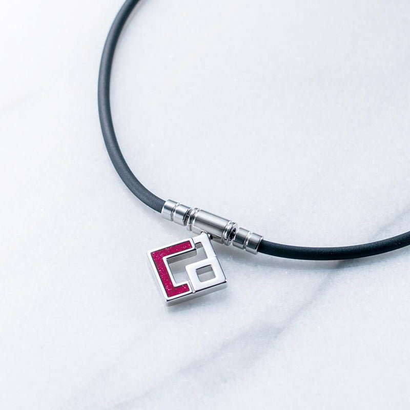 「CO」のブランドマークが印象的なトップデザインは「鏡面加工」と「研ぎ出し七宝」の技術を採用。全て人の手で一点ずつ加工を施し、プラチナのような輝きと黒曜石のように深い色との美しいコントラストを実現しました。ジョイントを兼ねたトップ部分は、左右どちらからでも外せる新設計。ループとトップが独立した構造なので、しなやかでやわらかい着け心地で首回りにフィットします。