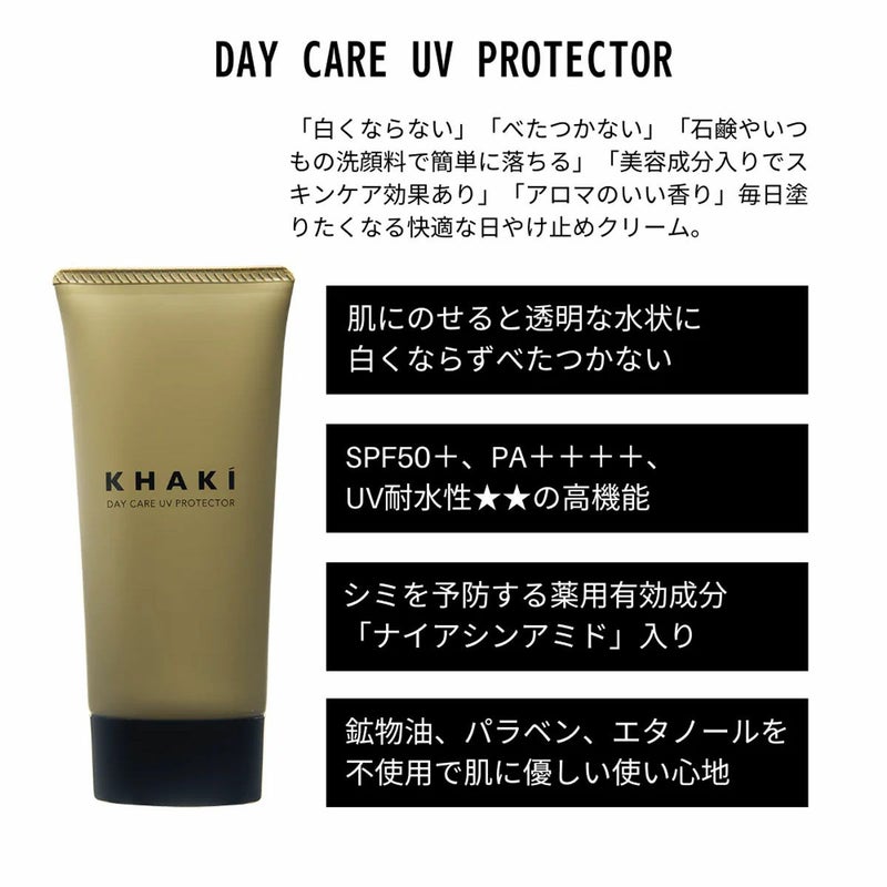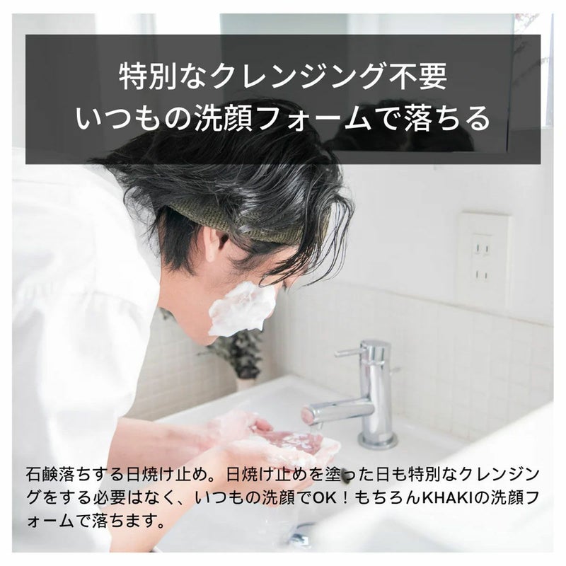 石鹸落ちする日焼け止め。日焼け止めを塗った日も特別なクレンジングをする必要はなく、いつもの洗顔でOK!もちろんKHAKIの洗顔フォームで洗い落とせます。