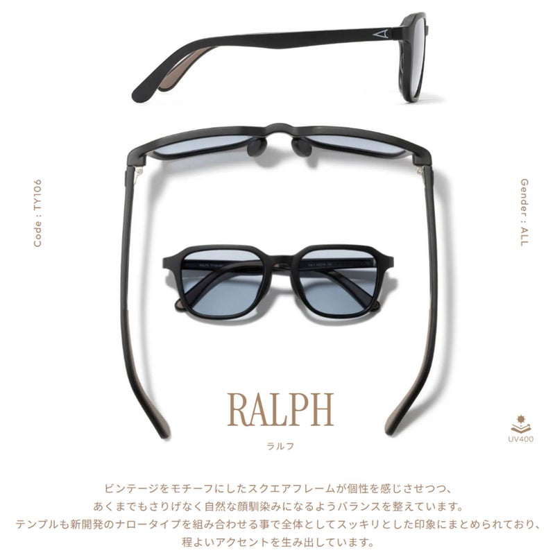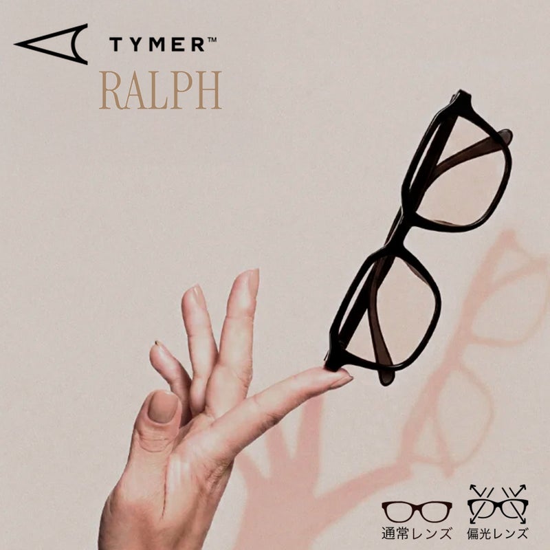 ビンテージをモチーフにしたスクエアフレームが個性を感じさせつつ、あくまでもさりげなく自然な顔馴染みになるようバランスを整えています。