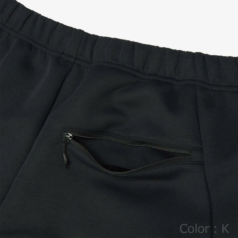 シルエットはゆとりあるリラックスフィットで、小物の収納に便利なサイドポケット、右後ろにはファスナーポケットも備えています。寒いシーズンのトレーニングシーンから日常シーンまで幅広く活用できます。