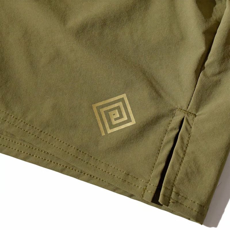 ストレッチ性があり風合いの良いクイックドライのファブリックをメインに使用し、ブランドロゴのプリントをアクセントに配したショートパンツです。