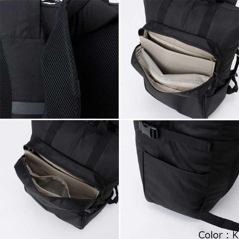 自立しやすいセルフスタンディングボトム構造/取り出しやすい蛇腹式パッドつきPCスリーブ+タブレットスリーブ/小物、ガジェット類の収納に便利なフロント上部ポケット/ファスナー式サイドヒドゥンポケット/ずり落ちを軽減するストレッチウェビングテープ/スパインチャネル/リフレクター