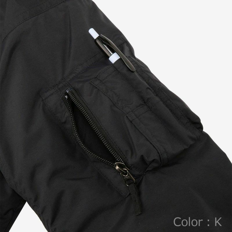 上腕にはボンバージャケットの特徴であるファスナーポケットを配置し、ICリフト券や小物を収納するのに便利です。