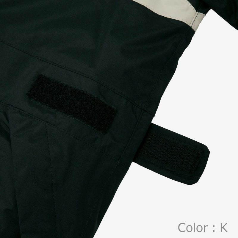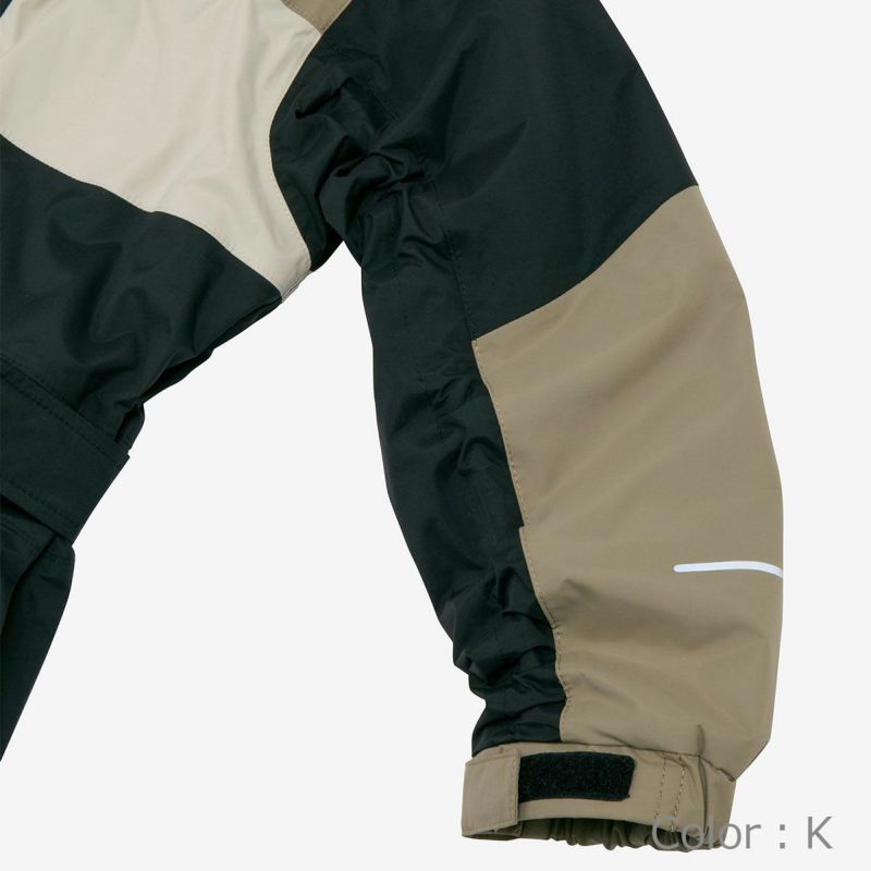 EXP GROW SYSTEM/取り外し可能なフード/記名ラベル付き/ポケット内部にあるドローコードにより袖丈、股下丈サイズをそれぞれ調整可能/ロゴ刺繍/リフレクトプリント
