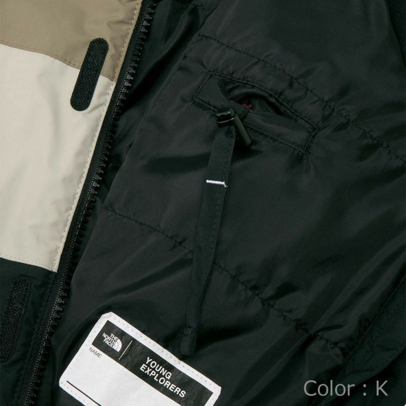 表地には防水透湿性のあるナイロン素材を採用。中わたには独自開発の保温素材・HEATSEEKERを封入。軽量で密度のあるポリエステルの中わたで、あたたかさを高めています。フードは取り外しが可能。子どもの成長に合わせてサイズ調整ができるEXP GROWシステムを採用。ポケット内側のドローコードで袖丈、股下サイズを調整できます。