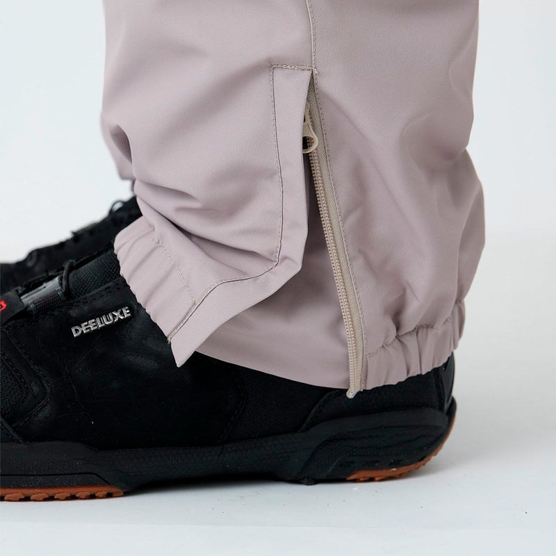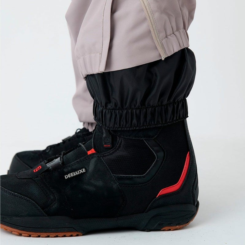 裾スパッツで雪の侵入も防止し、ウエストはアジャスタベルトとベルトループ付きで快適なフィット感に調整可能です。