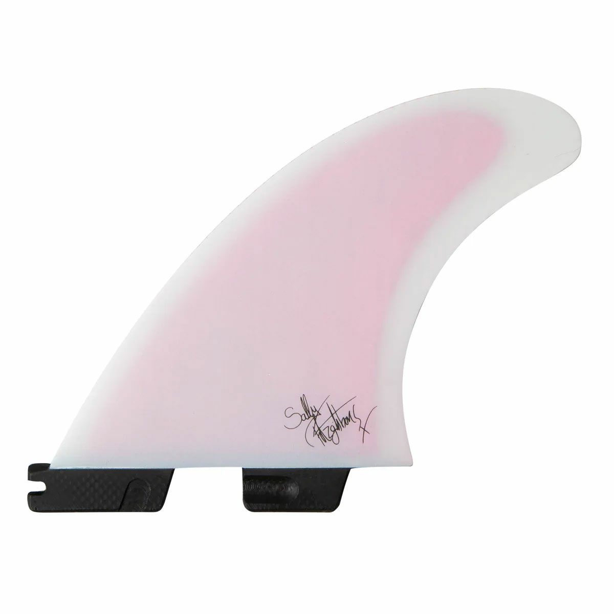 初心者の方から、上級者の方まで多くの人が使用している最もポピュラーなフィン。センター1本とサイド2本の合わせて3本になるトライフィンは、シングルフィンの直進性とツインフィンの回転性を併せ持ち、様々なコンディションに対応できます。それに加えハイスピードでの安定性・ターンの回転性と両方のバランスが取れ、最もパフォーマンスを発揮できると、現在主流になっています。