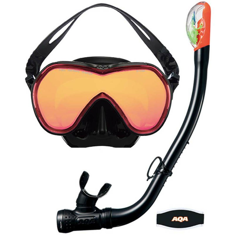 スノーケリング専用UVカットレンズマスクとドライトップシステム付きシリコンスノーケルのセット。装着することでマスクの着脱が容易になるマスクバンドカバー付き。髪の毛がストラップに絡まることも防止してくれます。柔らかく、顔にぴったりフィットするシリコン素材。経年劣化に強く、長く使用することが出来ます。