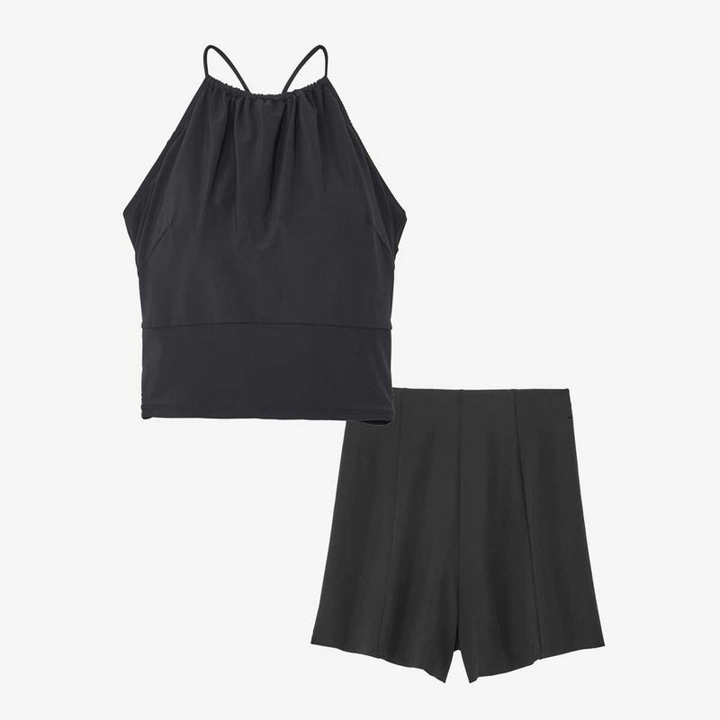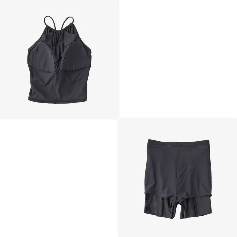 非日常でととのえるのこころの健康をテーマに大人のスイムウエアを提案する「Speedo breath(スピード・ブレス)」。GRS認証のすてられるべき廃棄物を100%使用したナイロン糸「RECO(R)NYLON(レコ・ナイロン)」を使用したリサイクル素材「Sensitive(R)Reco(センシティブ レコ)」採用のレディースセパレート水着です。トップスは鎖骨部分をチラ見せにして、肩回りをスッキリ華奢に見せます。繊細なストラップを用いたバックスタイルがヘルシーな印象。ストラップの合わせ位置が可動でき、フィット感を調整できます。差し込みタイプのカップ付き。裾広がりのボトムスは、脚長・脚痩せ効果が狙えます。UVカット機能付き。「見せたいところは見せる、隠したいところは隠す」を叶えた一着。スイムウエアとしての使用はもちろん、トップスは普段使いのカップ付インナーとしても活用いただけます。また旅先では羽織りアイテムをあわせればラウンジウエアとしてもお使いいただけます。