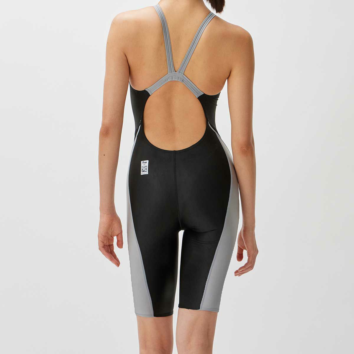 FINA承認水着(通称:試合用水着)に比べると、生地がしっかりと厚めになっていて耐久性に優れており、たくさん泳ぐ練習用として作られています。(水着を使う頻度が高ければ高いほど、水が抜ける胸やお尻の部分から薄くなっていきます)。