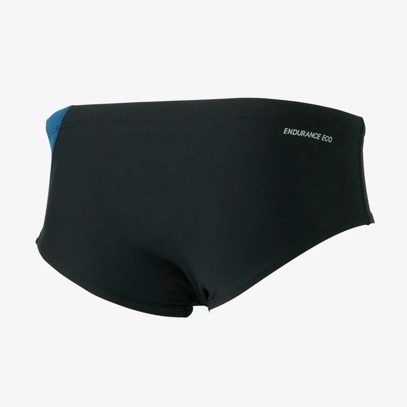 日々プールでトレーニングを重ねる学生やアクティブスイマーをサポートする、練習用スイムウエアコレクション「TurnS(ターンズ)」。今シーズンから登場した新シリーズ「FunPiece(ファンピース)」。練習をもっとFunにHappyに。練習に欠かせない水着がそんな日々のPieceの一つになるよう新しいスタイルの提案をします。毎日のトレーニングを支える高い耐塩素性・4WAYストレッチ性に加え、透けにくい厚みと柔らかな風合いを実現した、ペットボトルを粉砕して再生したリサイクルポリエステルと植物性由来原料のSOLOTEXを使用した環境配慮型素材「ENDURANCE ECO(エンデュランス・エコ)」を採用したメンズショートボックスです。脚の動きを妨げないショート丈(脇丈11cm※Lサイズ)で、裾のめくり上がりの心配もありません。中央寄りの切り替えにより、生地の浮きが軽減され、高いフィット感と安定感を実現。フロントV字と左脇に裏地付き。無地テイストのアシンメトリーデザインです。
