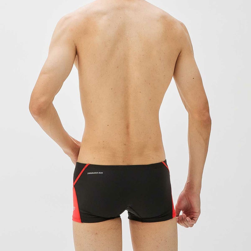 毎日のトレーニングを支える高い耐塩素性・4WAYストレッチ性に加え、透けにくい厚みと柔らかな風合いを実現した、ペットボトルを粉砕して再生したリサイクルポリエステルと植物性由来原料のSOLOTEXを使用した環境配慮型素材「ENDURANCE ECO(エンデュランス・エコ)」を採用したメンズボックスです。
